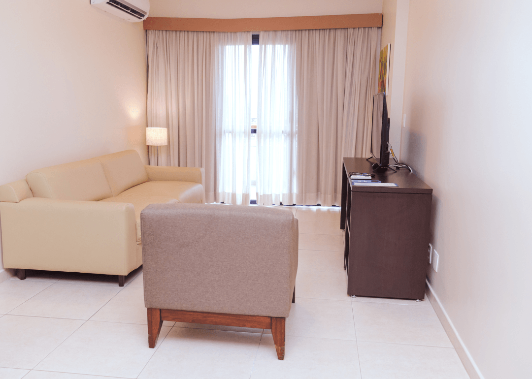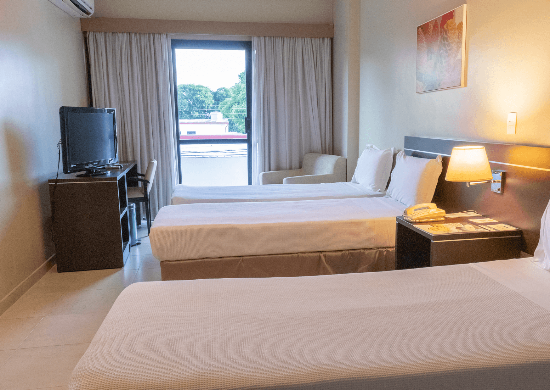 São 60 apartamentos com 22m2, internet Wi-Fi, ar-condicionado, TV LCD a cabo, espelho de corpo inteiro, banheiro com ducha quente e secador de cabelo, telefone e frigobar. Alguns apartamentos possuem vista privilegiada para o Teatro Amazonas. Nossas espaçosas suítes possuem 45m2, uma confortável sala de estar e cozinha com microondas. Para sua comodidade oferecemos serviço de transfer executivo bilíngue.