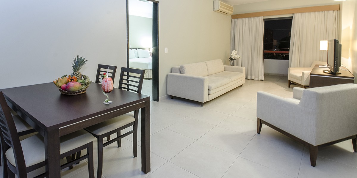 Nossas espaçosas suítes possuem 45m², uma confortável sala de estar e cozinha com microondas.